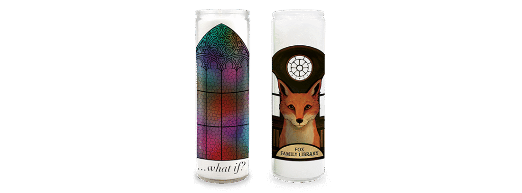 Decorating Options: A full wrap 4-c label replicates the look of these candles sold in grocery stores and botanicas.